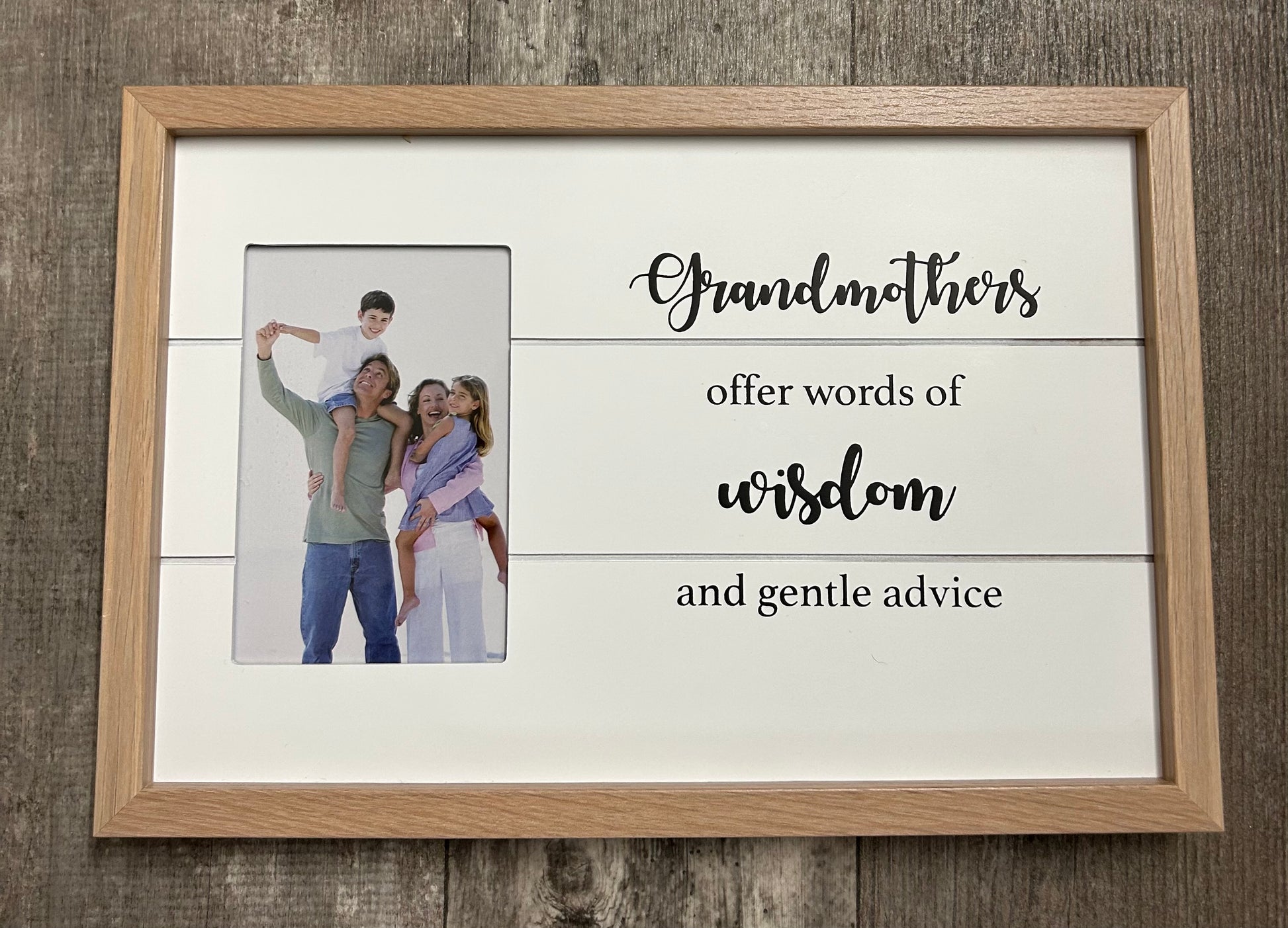 Pressed wood Frame with white background. Sentiment reads “Grandmother’s offer words of wisdom and gentle advice.”