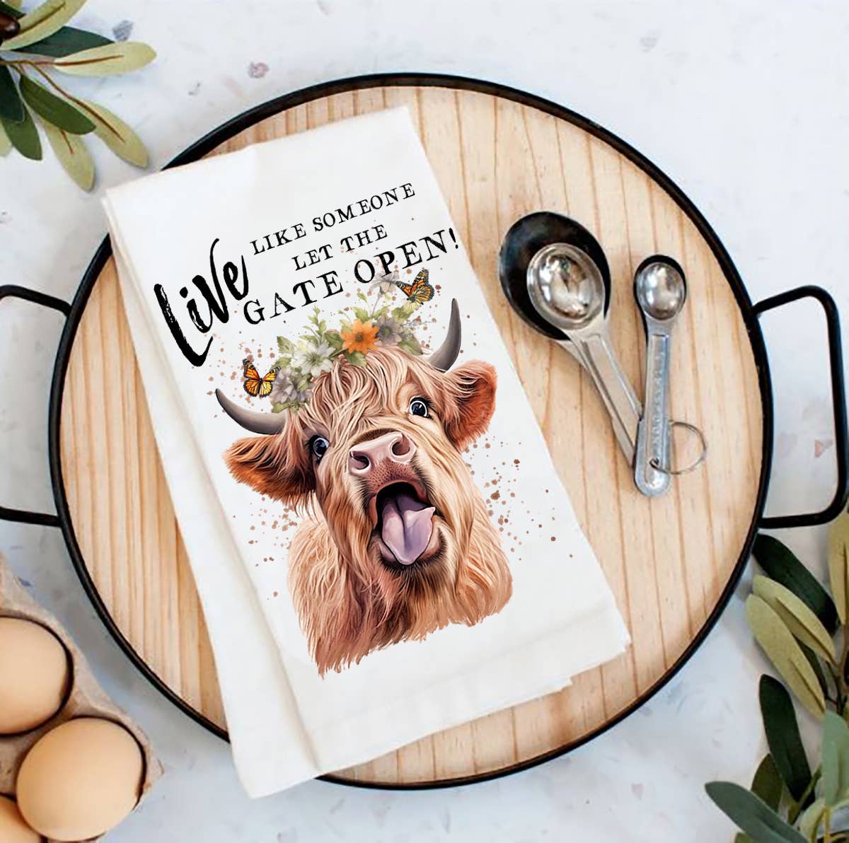 Avery Lane Gifts - Highland Cow Life Life Gate Open Flour Sack Tea Towel