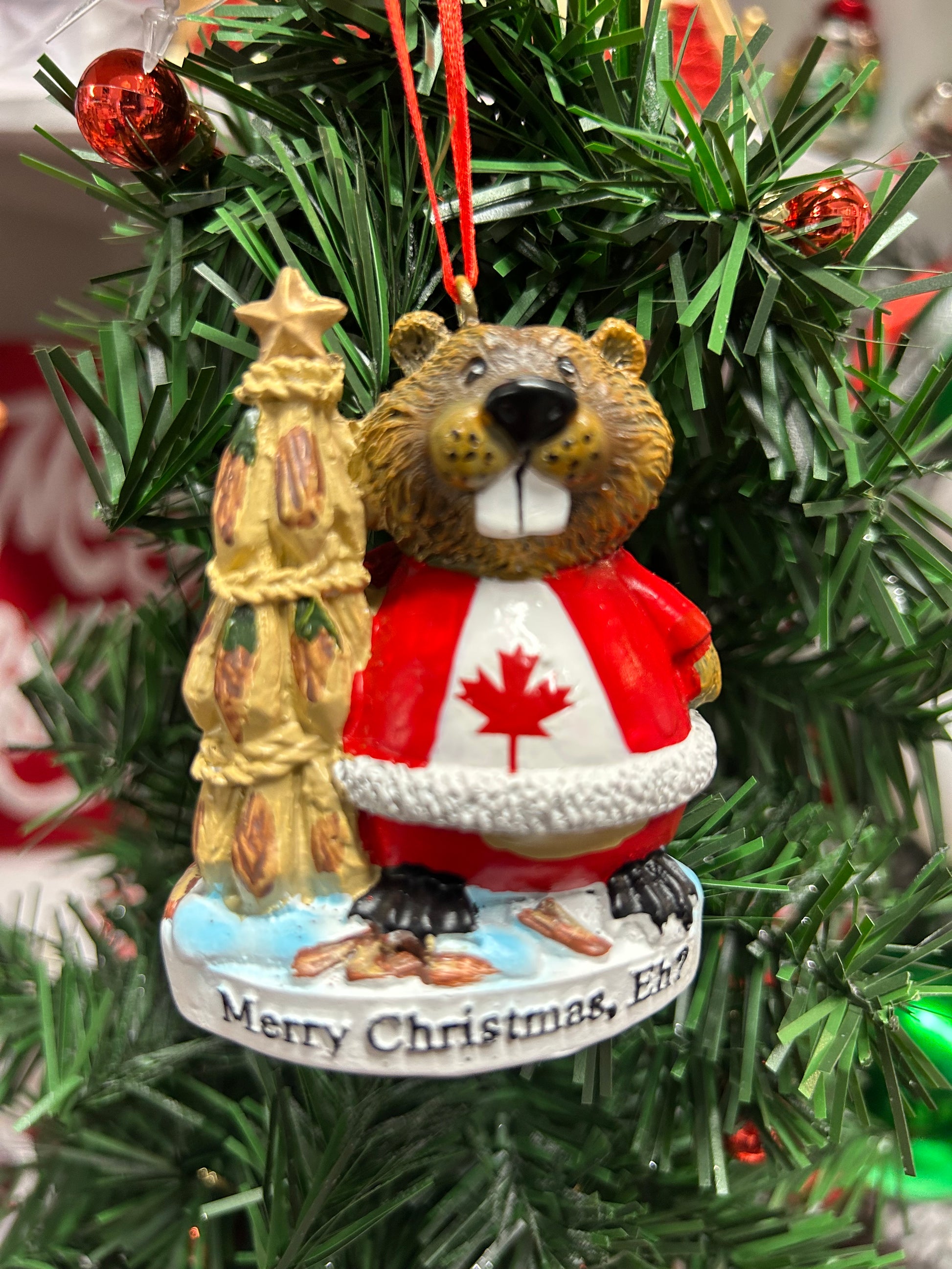 Cute beaver with red and white shirt with Canadian Flag on crest. Sentiment “Merry Christmas, Eh?”