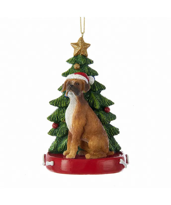 Boxer and Christmas Tree Ornament, 4”, KA- C7954