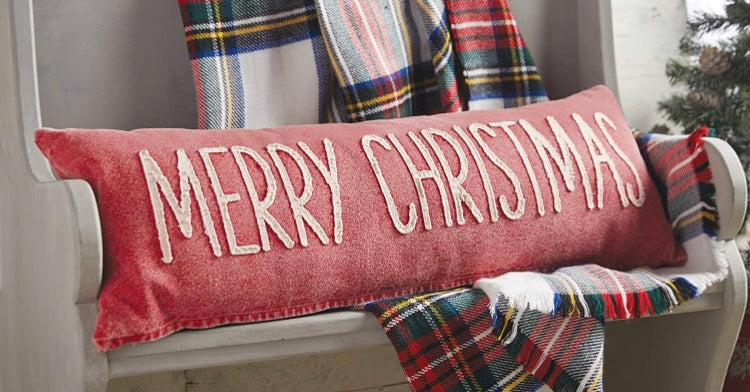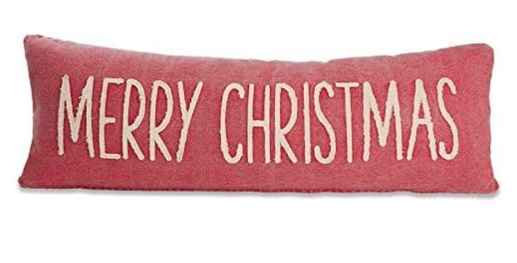 It's the happiest time of the year, and your space will reflect the times of the season with this red canvas rectangular pillow, featuring an Ivory "Merry Christmas" appliqued sentiment and zippered closure.