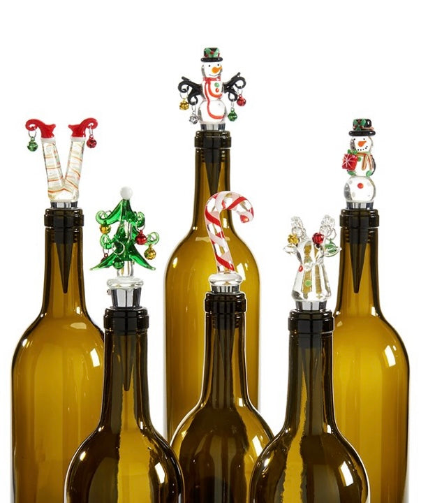 Glass and Zinc Alloy LED lighted Christmas design wine bottle stopper.