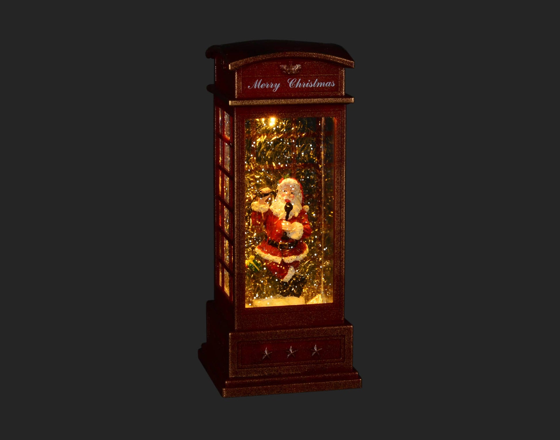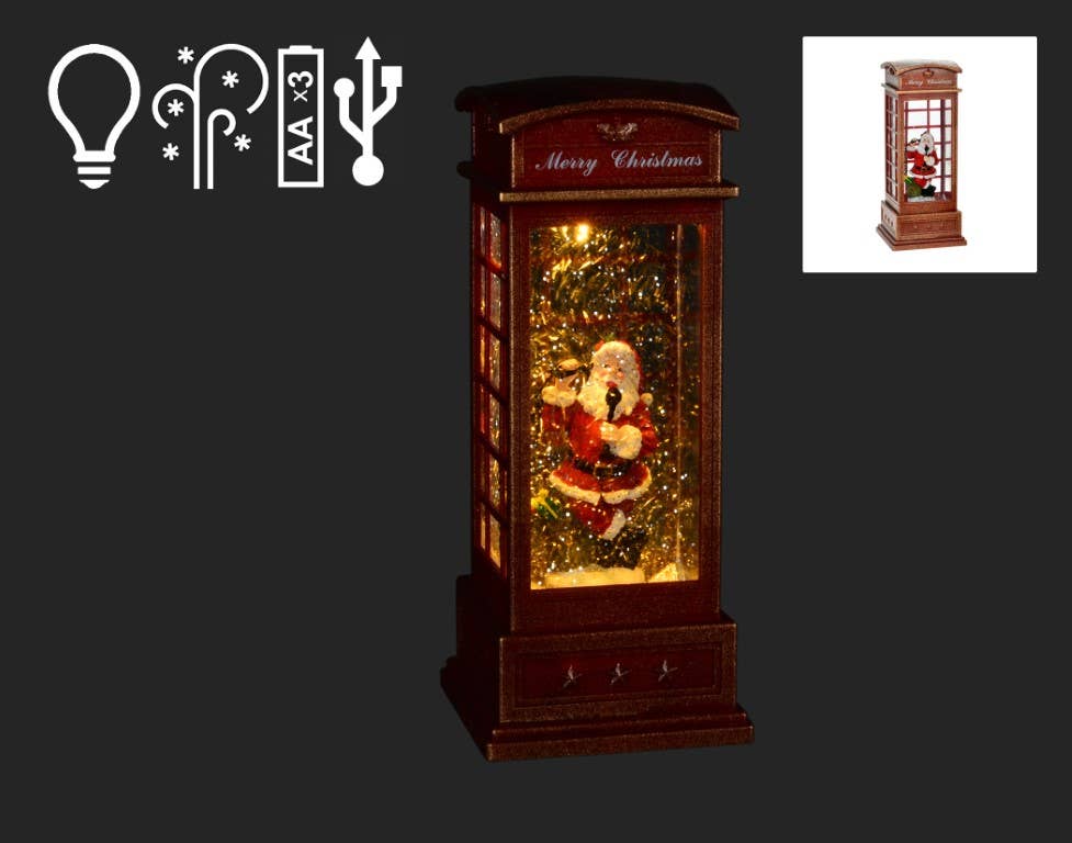 Christmas Tradition - 10" Red LED Phone Booth Snow Globe w/Santa
