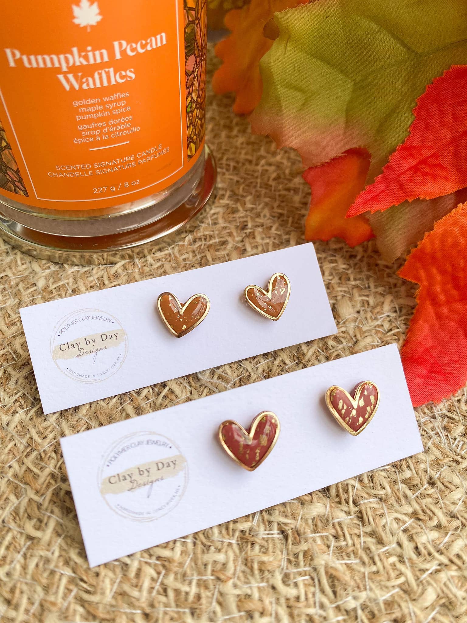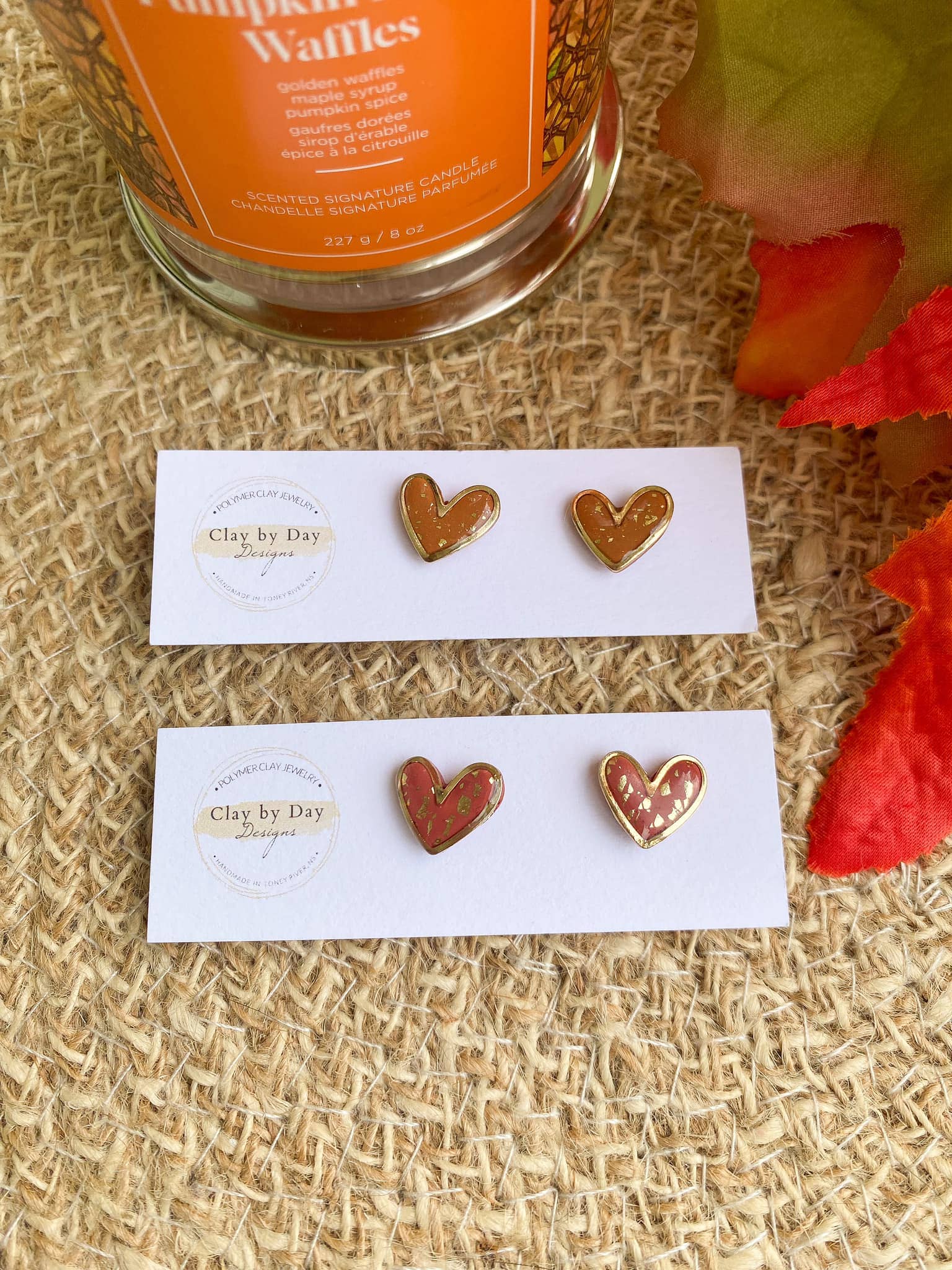 Clay by Day Designs - Autumn Gold Trim Heart - polymer clay earring : Terracotta