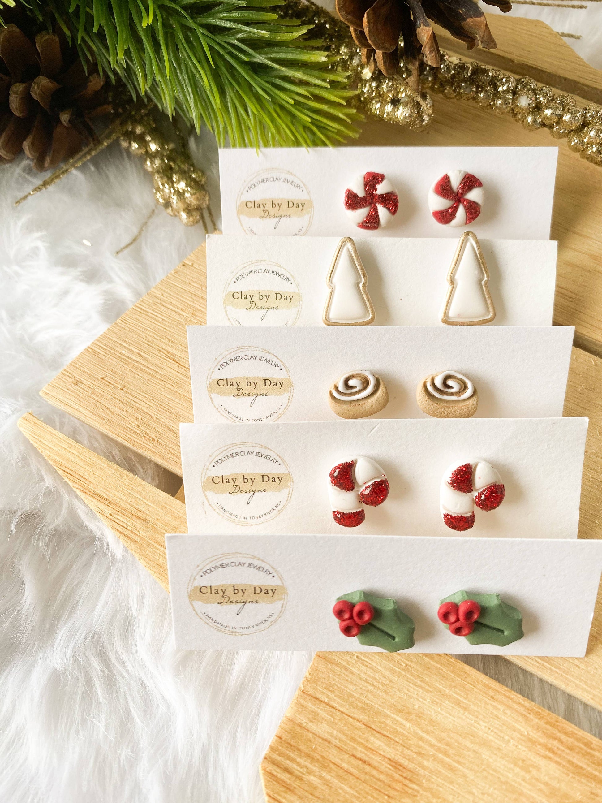 Single Christmas Studs - Winter Clay Earrings: Candy Cane