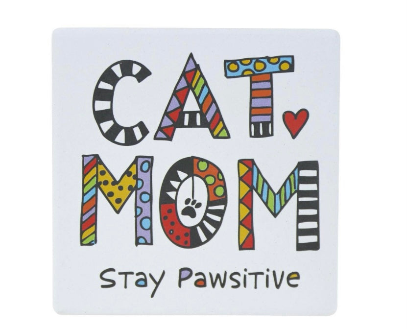This colorful coaster from the Cuppa Doodles collection celebrates the love of cats. The title of Cat Mom is cheerfully written on this 4 water absorbing coaster in a delightful doodle script.