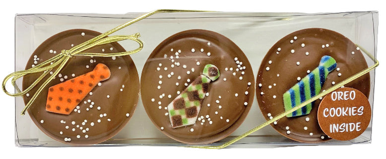 Oreo Cookies smoothered in Milk Chocolate topped with a Tie! Perfect gift for Father's day. Made in Ancaster Ont by anDea Chocolate