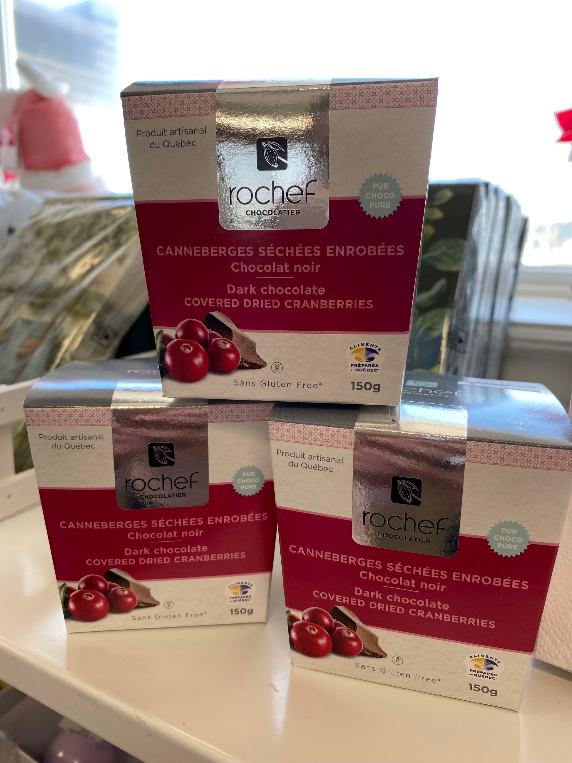 Rochef enrobés collection is made with our premium Rochef chocolate! We only use real dried fruits, no jelly! Rochef master chocolatiers roast the cranberries on site in the morning and once set they are chocolate covered in the afternoon so you can enjoy the freshest product available. Some say they are a bit crazy, but remember they also buy their product like you!
