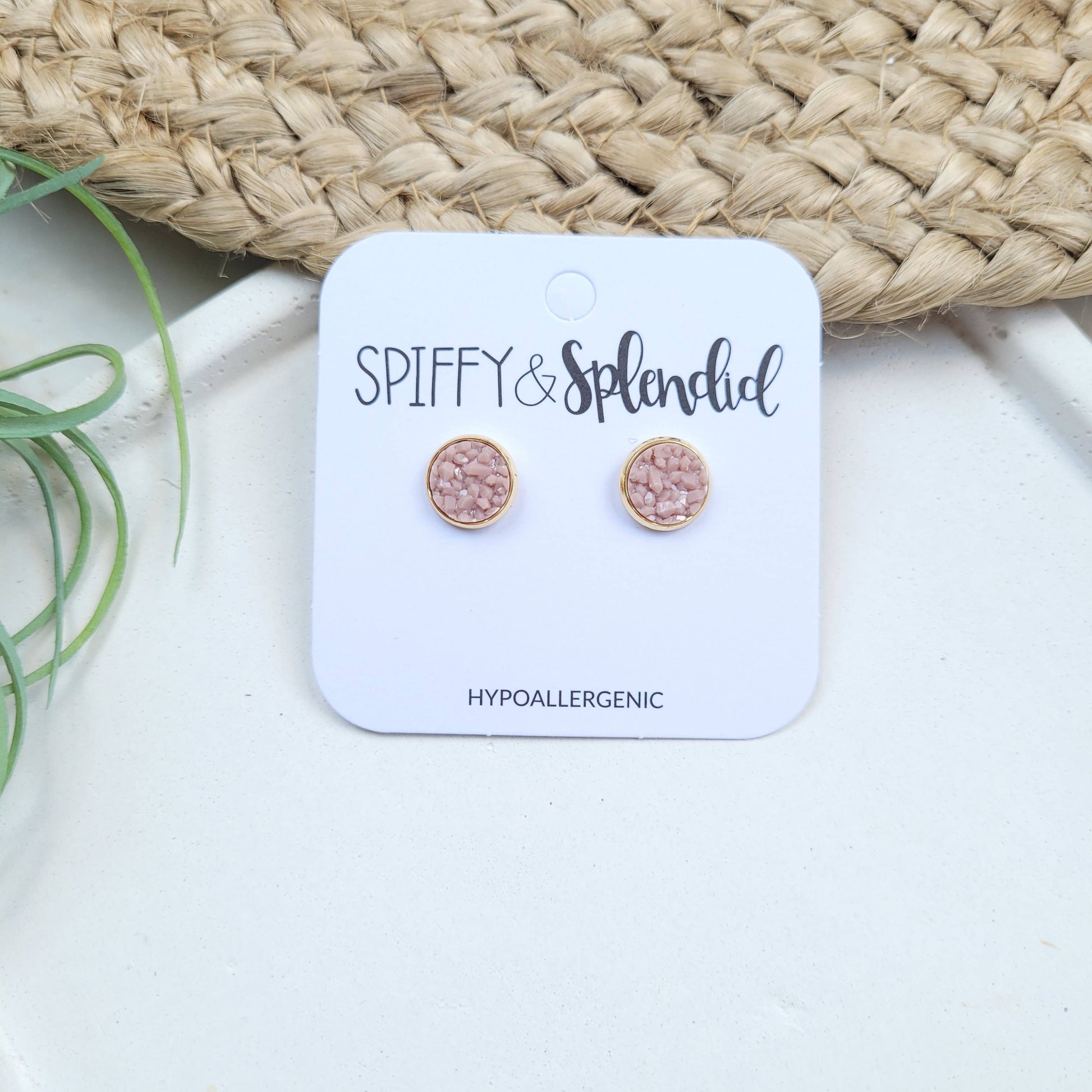 8mm faux druzy stone. Hypoallergenic stainless steel posts in gold.