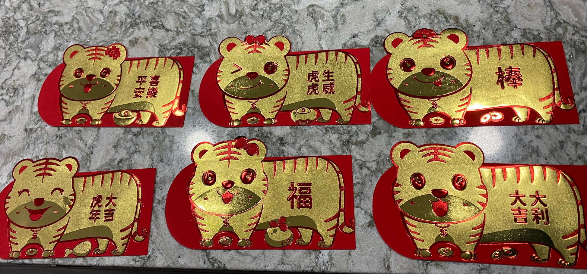 Features 6 Red and Gold Tigers Packages, 3 different pictures