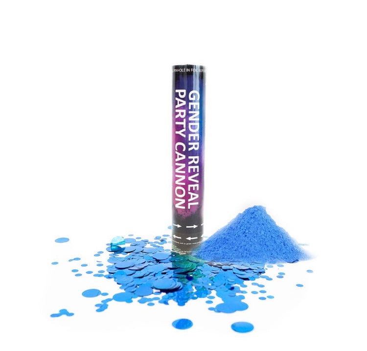 Gender Reveal Party Poppers are filled with Holi Color Powder (corn starch and food grade dye) and biodegradable confetti circles. The circles come in quarter size pieces and dime size pieces. Our simple point and twist cannons are easy to use and clean up is a breeze with our biodegradable powder and confetti (we still recommend cleaning up as best you can!). Choose from 12" or 24" length