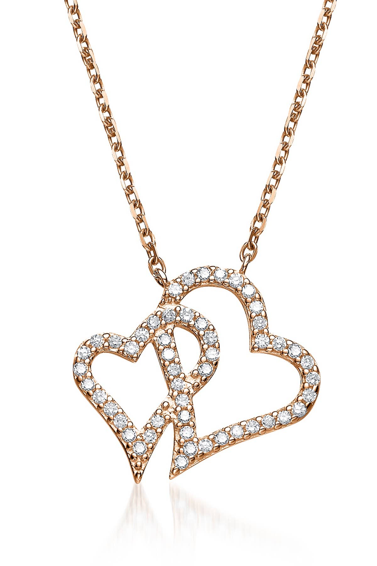 Genevive - CZ Rose Plated Double Heart Micro Pave Pendant(7075-OSE)