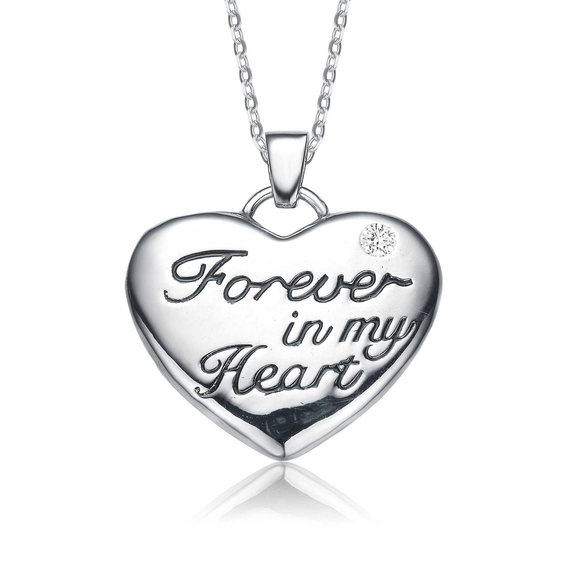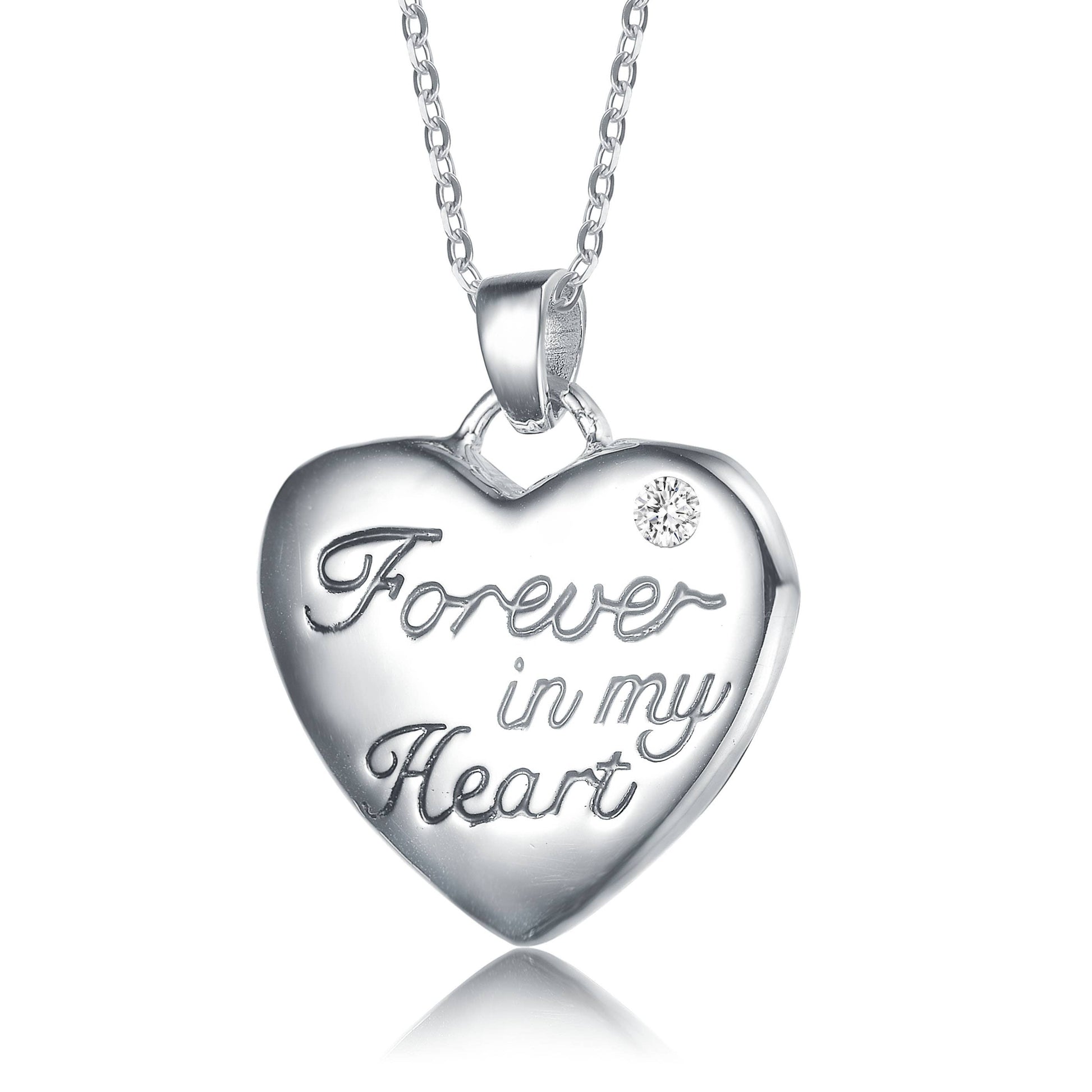 Heart with sentiment “Forever in my heart,” small cubic circonia.