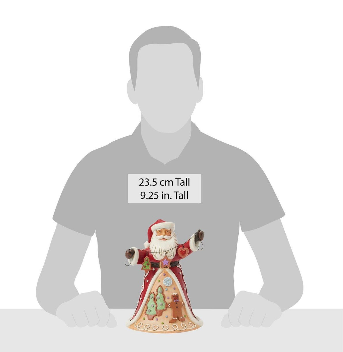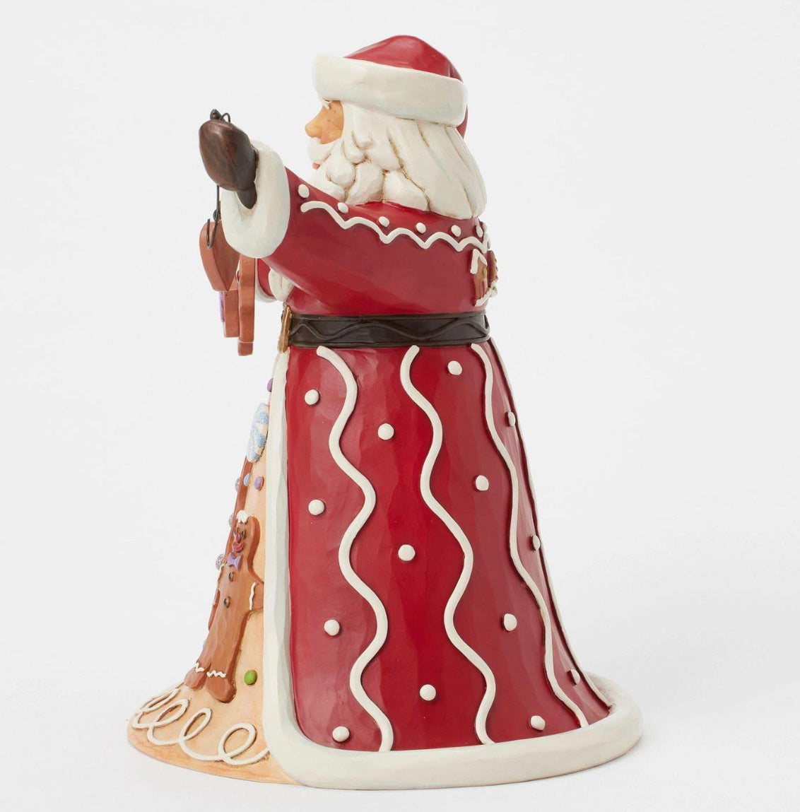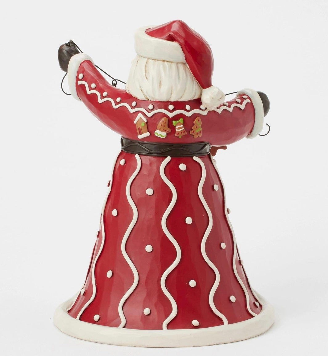 Santa brings the Gingerbread Christmas holiday spirit in this Jim Shore design, holding a string of decorated Christmas cookies. What a joyful smile, Santa presents with his festive garland, while his cloak features a scene of colorful cookies