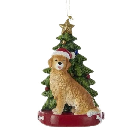 Golden Labrador Retriever with Christmas Tree Ornament, 4”, KA-C7954