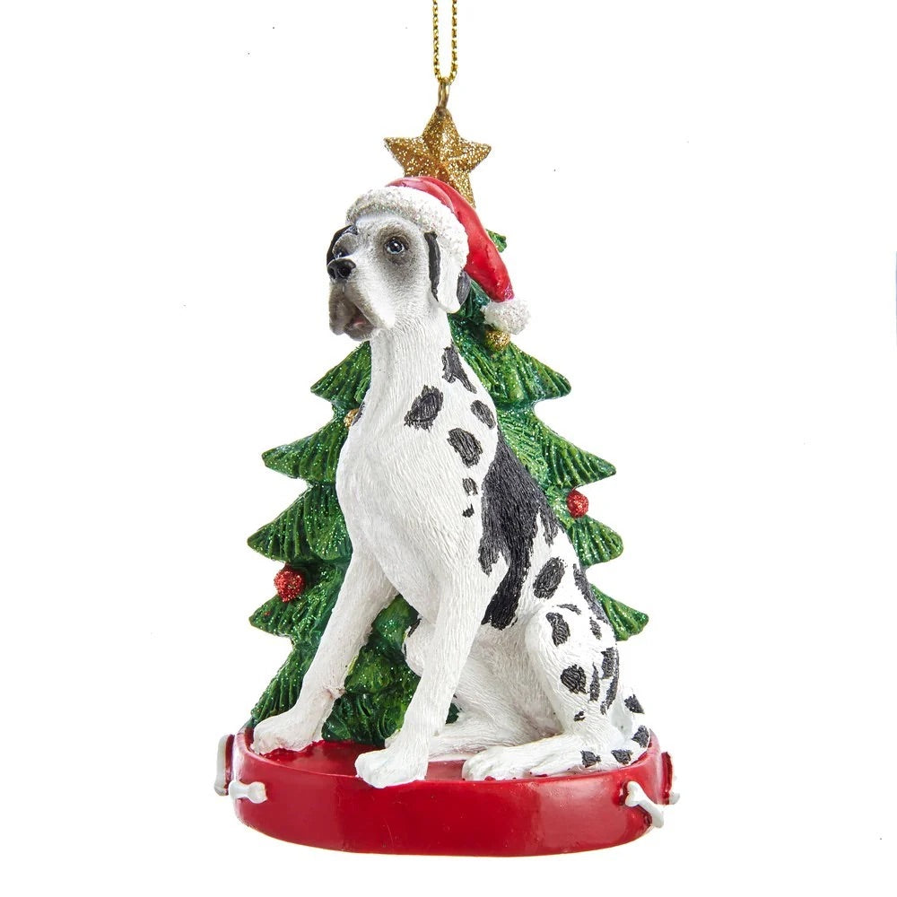 Great Dane Dog and Christmas Tree Ornament, 4”, KA-C7984