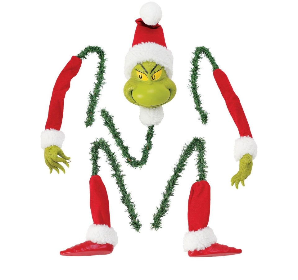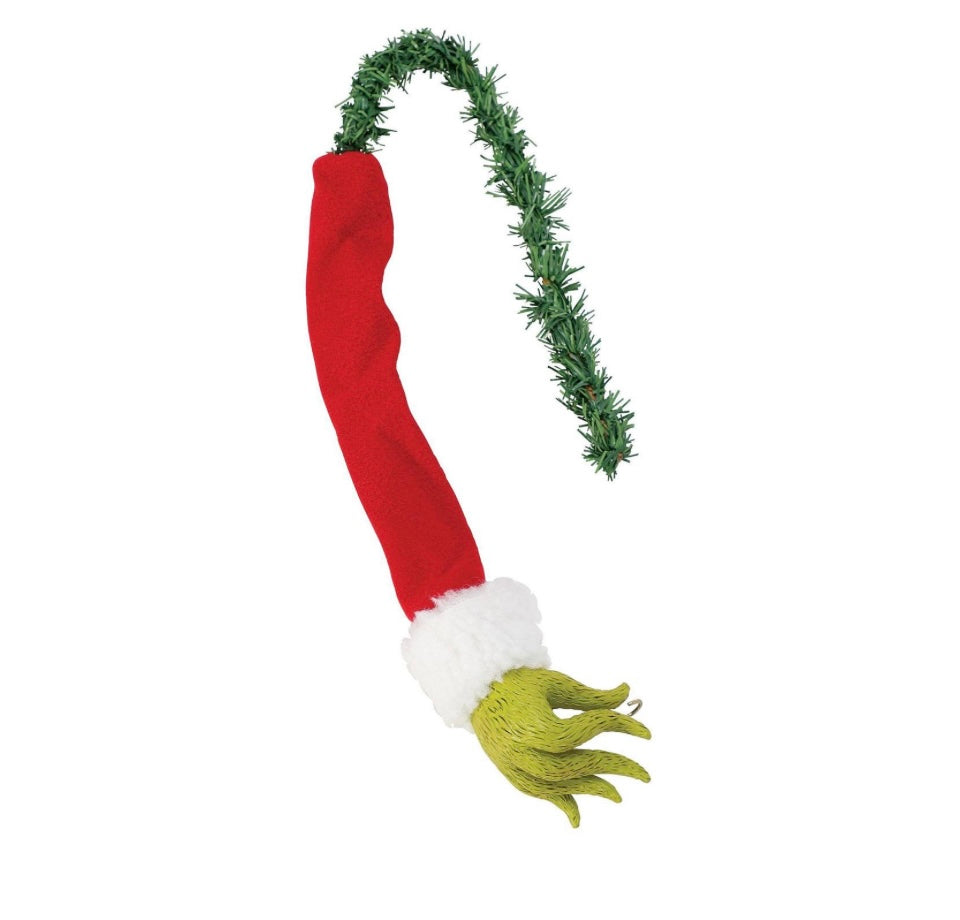 Decorate your tree with the Grinch! the head, arms, legs can be attached to the tree branches. His left hand includes a hook to hang an ornament.