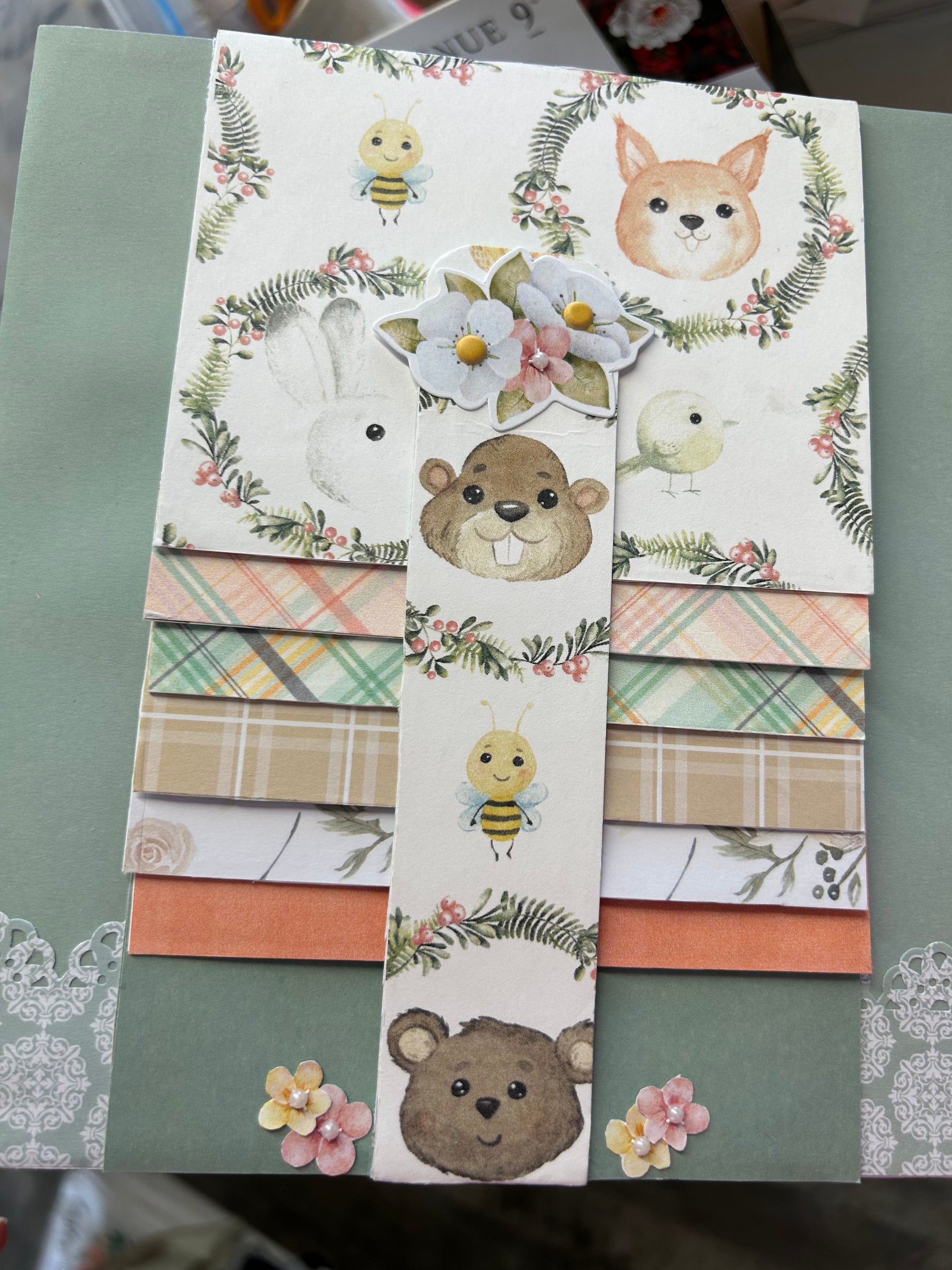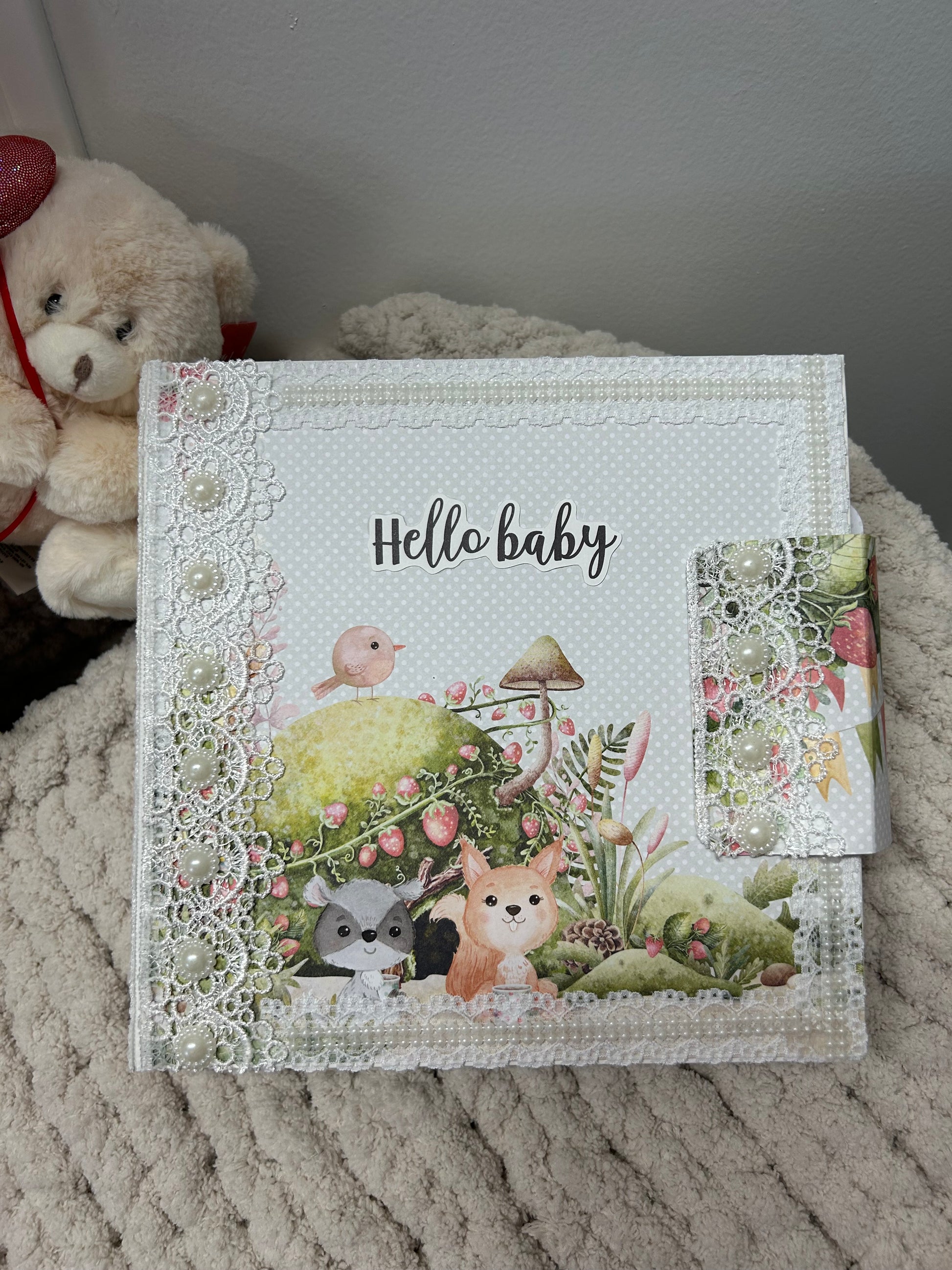 Unbelievable quality and value. Handmade baby book decorated in lace and pearl like decorations. Neutral colours, cream background with animals and birds throughout. Contains many pockets throughout with cards that you can customize, small booklet that features family tree, birthdays to one year, milestones. First birthday and more.