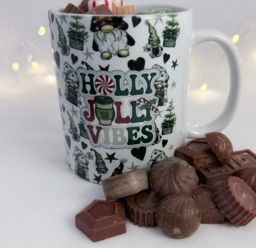 Spread holiday cheer with our Holly Jolly Vibes holiday gift box, a whimsical and cozy collection perfect for anyone who loves festive charm. This delightful set includes a reusable ceramic mug featuring an adorable gnome design, filled with a hand-poured coffee cake-scented candle. The natural wood wick crackles softly as it burns, filling your home with the warm, sweet aroma of spiced coffee cake fresh from the oven.