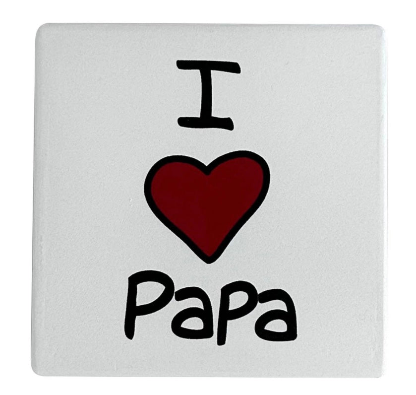 Add some fun flair to the table and keep it clean with this playful coaster by Our Name is Mud. This 4 inch water absorbing coaster is simple and sweet. With a red heart, this coaster gives papa a daily reminder that he is very well loved.