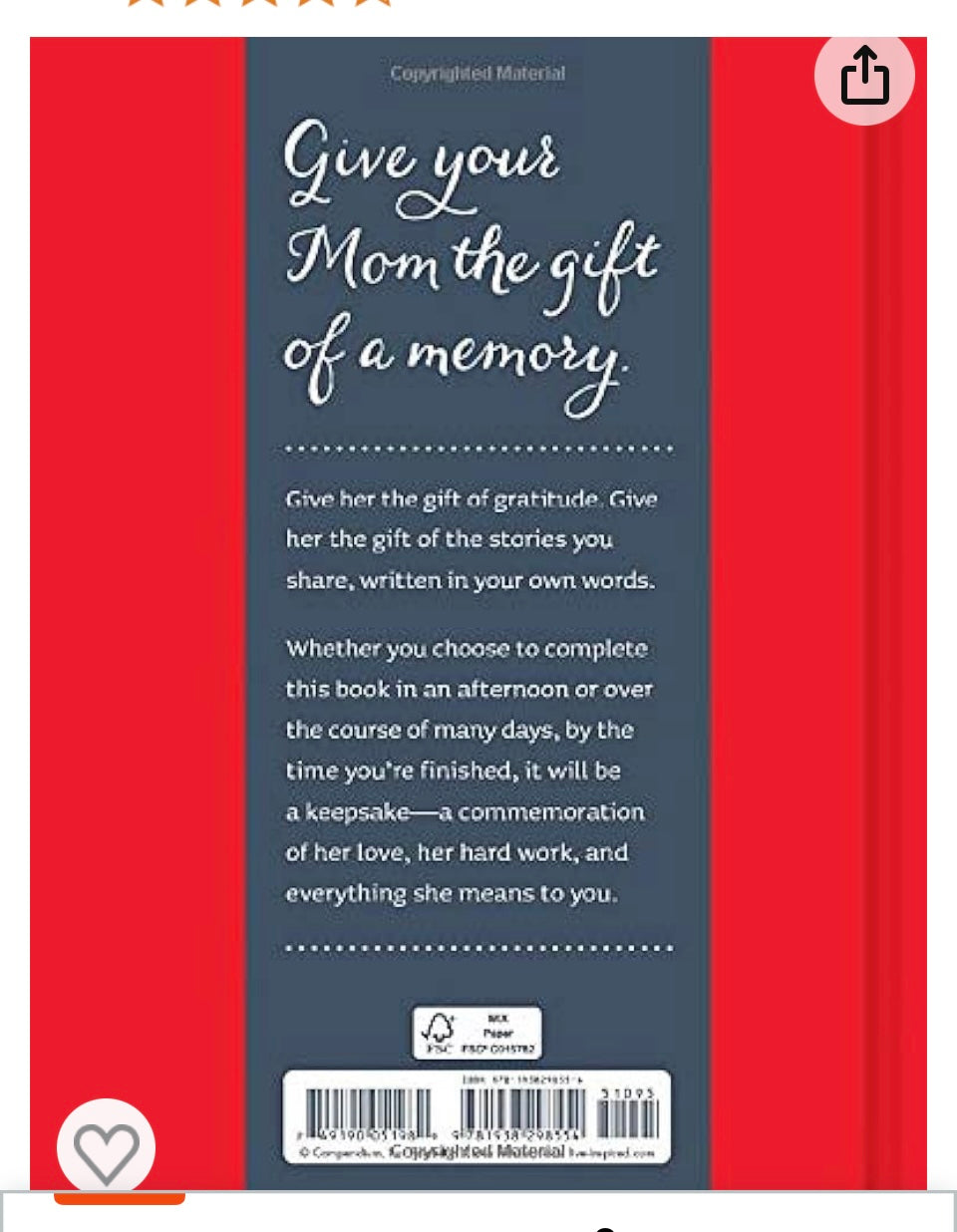 Give your Mom the gift of gratitude. Give her the gift of the stories you share, written in your own words. Whether you choose to complete this book in an afternoon or over the course of many days, when you're finished, it will be a personal keepsake she will treasure for years to come.
