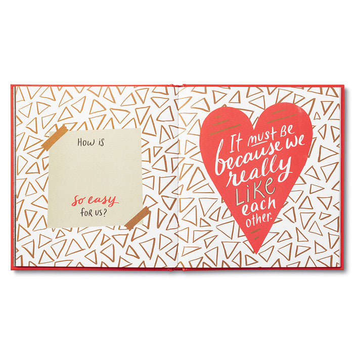 Together you’ve crafted a uniquely wonderful love story, full of laughter, sweet moments, and the best of memories. Capture the details in this unique fill-in book. With playful prompts like, “I will never get tired of the way we____________,” and “I’m pretty sure the stars brought us together so we could_____________, ” you’ll create a keepsake gift that celebrates all the amazing things that make your “us” so special.