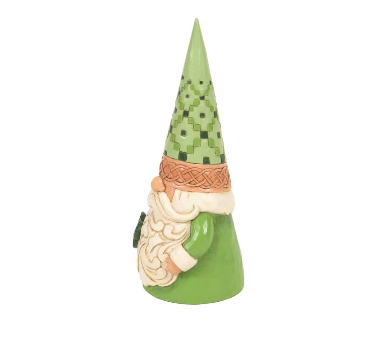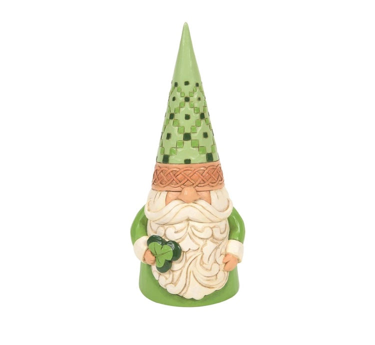 Faith and begorrah, Jim Shore's whimsical Irish Gnome is a charming tribute to the Emerald Isle. Lovingly hand-painted in shades of green this would-be Leprechaun with Shamrock in hand features the Irish Chain quilt pattern on his cap.