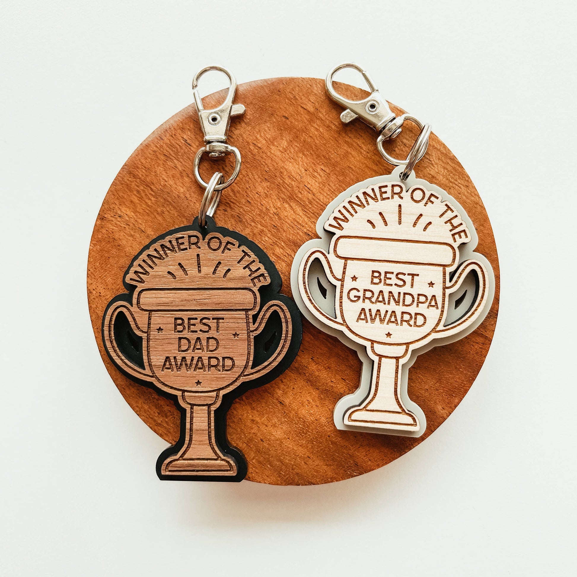 Knotty Design Co. - Best Dad/Grandpa Award Wood And Acrylic Keychain: Black / Dad / Walnut (Dark)