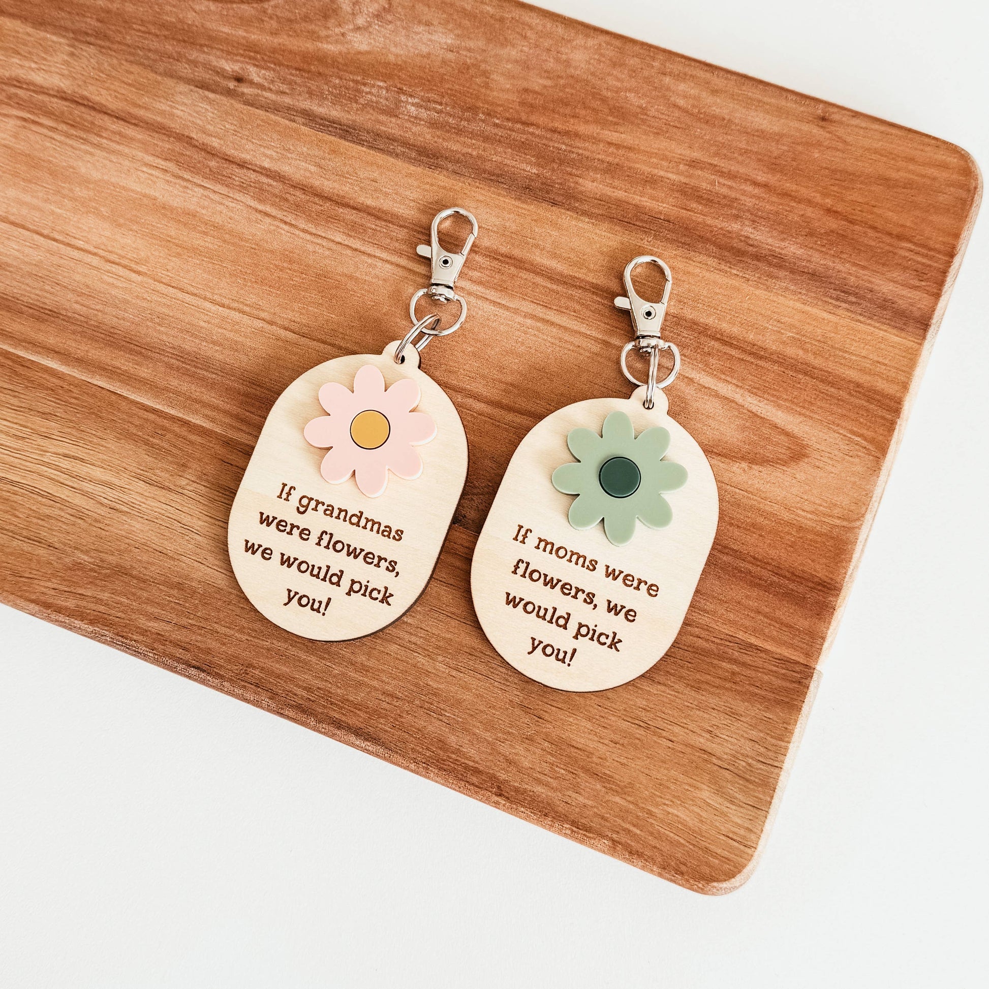3D Wood and Acrylic Keychain | Mother's Day Keychain: If Moms/Grandmas were Flowers, 2 Colours & Styles(sold individually)