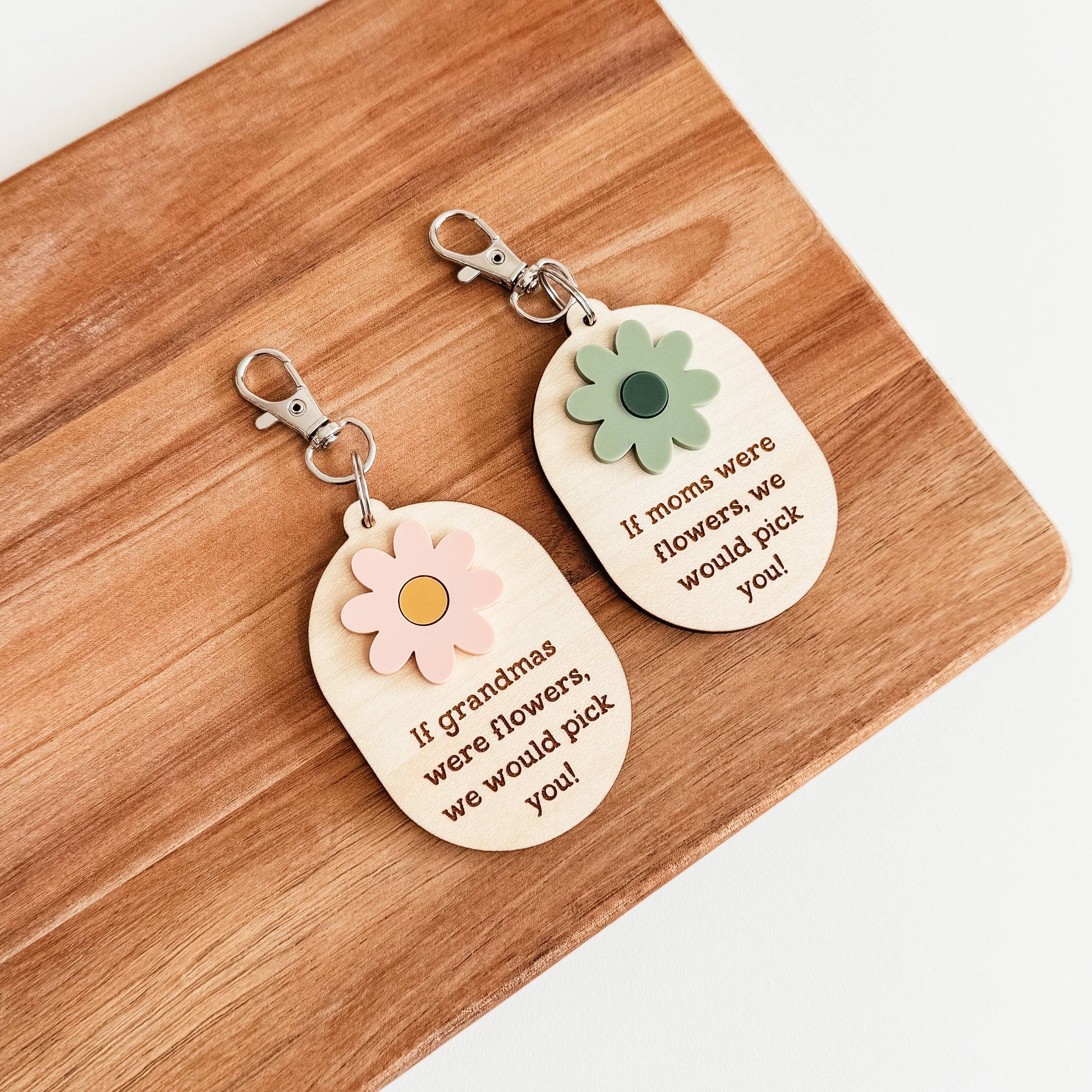 Knotty Design Co. - Daisy 3D Wood and Acrylic Keychain | Mother's Day Keychain: Fern/Sage / If Grandmas Were Flowers