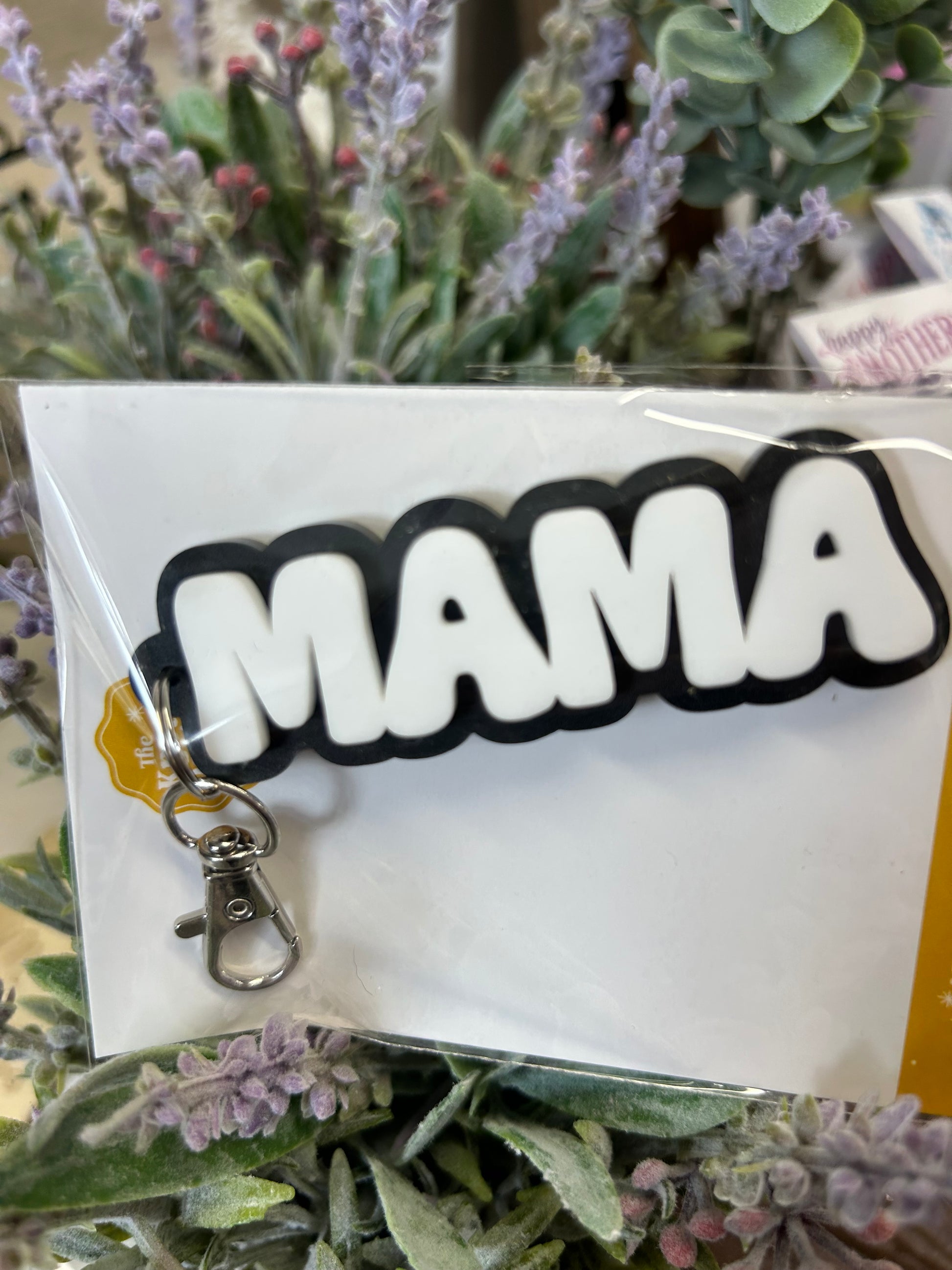 Our 3D MAMA keychains are cut from two layers of acrylic (white lettering with your choice of base layer). Choose from over 30 colours!