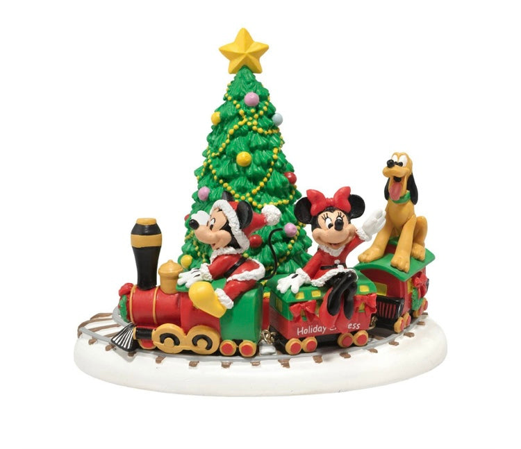 Mickey and Minnie try out the nephews new train to be sure all is in working order for Christmas Morning. Hand painted and handcrafted from skilled artisan and inspired by the genius of Walt Disney.