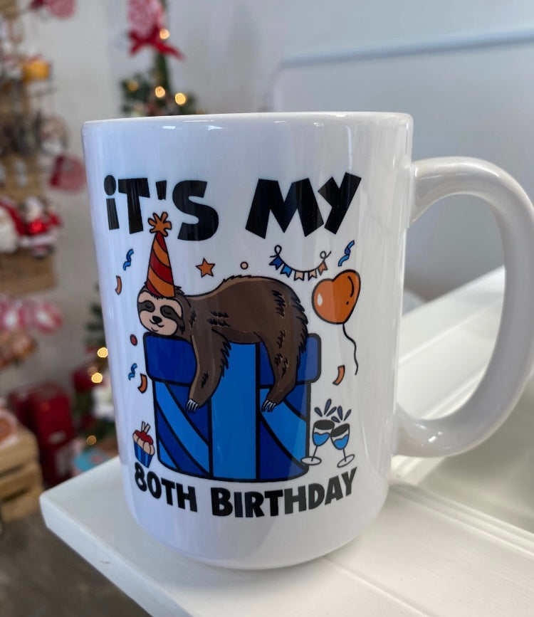 These large ceramic milestone mugs make the perfect Gift. Various styles available; balloons, sloths, etc.