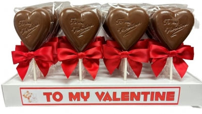 Indulge in some sweetness with Milk Chocolate To My Valentine Suckers! Made by Andea Chocolatier's in Ancaster, ON, these delectable treats are perfect for Valentine's Day.