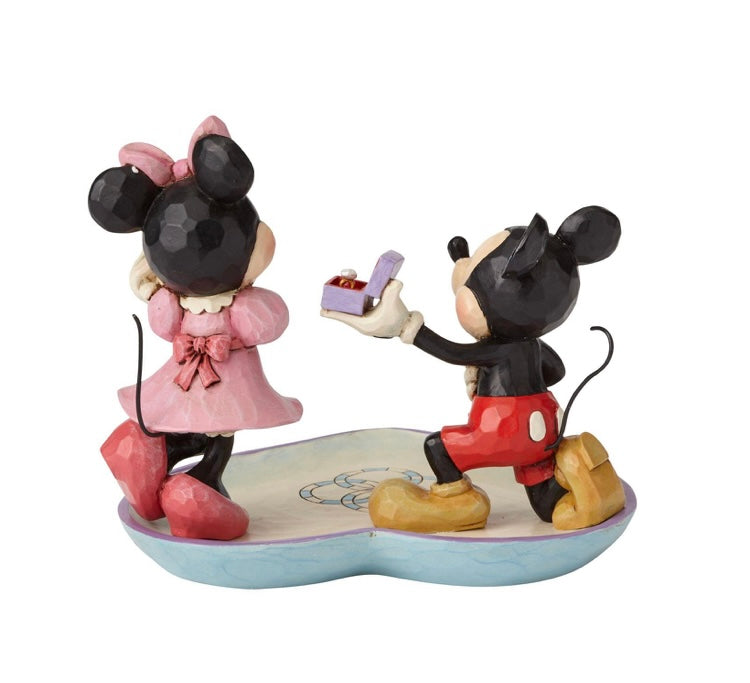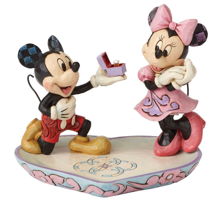 A romantic at heart, Mickey Mouse gets down on one knee to propose to his forever sweetheart. Minnie swoons in response. Set rings in the interlocking circles of this stone resin ring tray to ensure they're always close at hand.