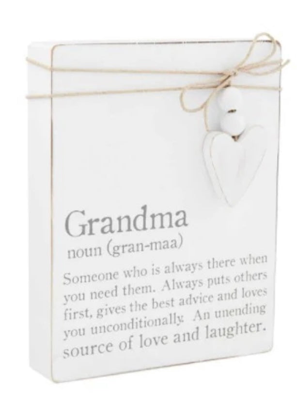 Pine, rectangular plaque honouring your special Grandma. Rustic white.