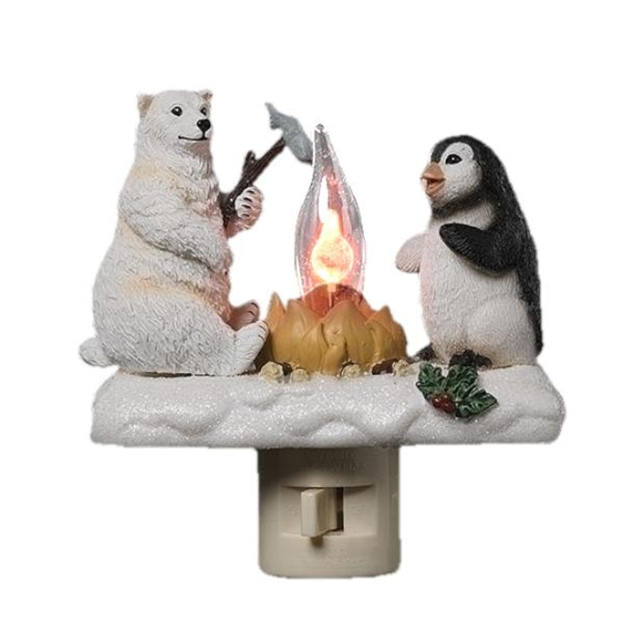 POLAR BEAR AND PENGUIN FLICKER FLAME CAMPFIRE NIGHT LIGHT - 160423