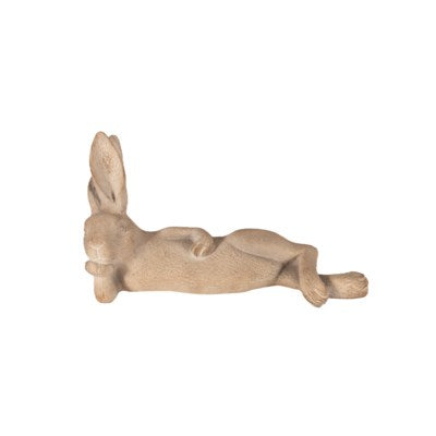 Introducing RABBIT IN LAZY Pose-the perfect addition to your decor! Made of durable resin, this tan reclining rabbit offers both style and comfort with its 9.5"l x 4.25"w x 5.25"h dimensions. Ideal for animal lovers or those looking for a touch of whimsy. Relax effortlessly in expertly crafted design.