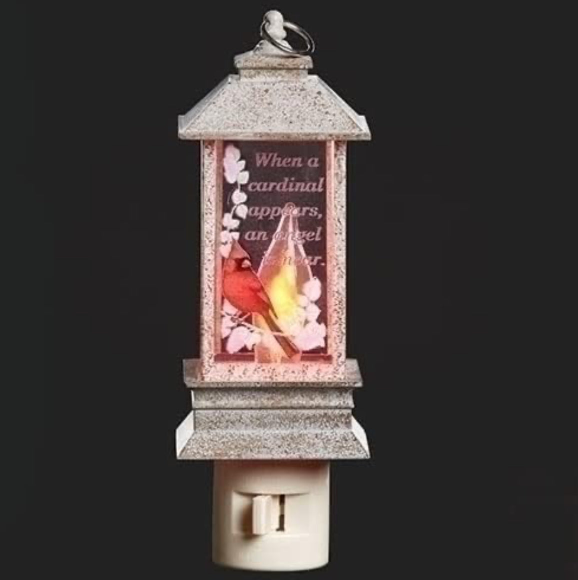 Illuminate your home with the beautiful Cardinal Night Light Memorial by Roman. Crafted with a detailed cardinal design, this night light is not only aesthetically pleasing but also carries a meaningful sentiment, "When a cardinal appears an angel is near". Let this night light provide comfort and warmth to your space.