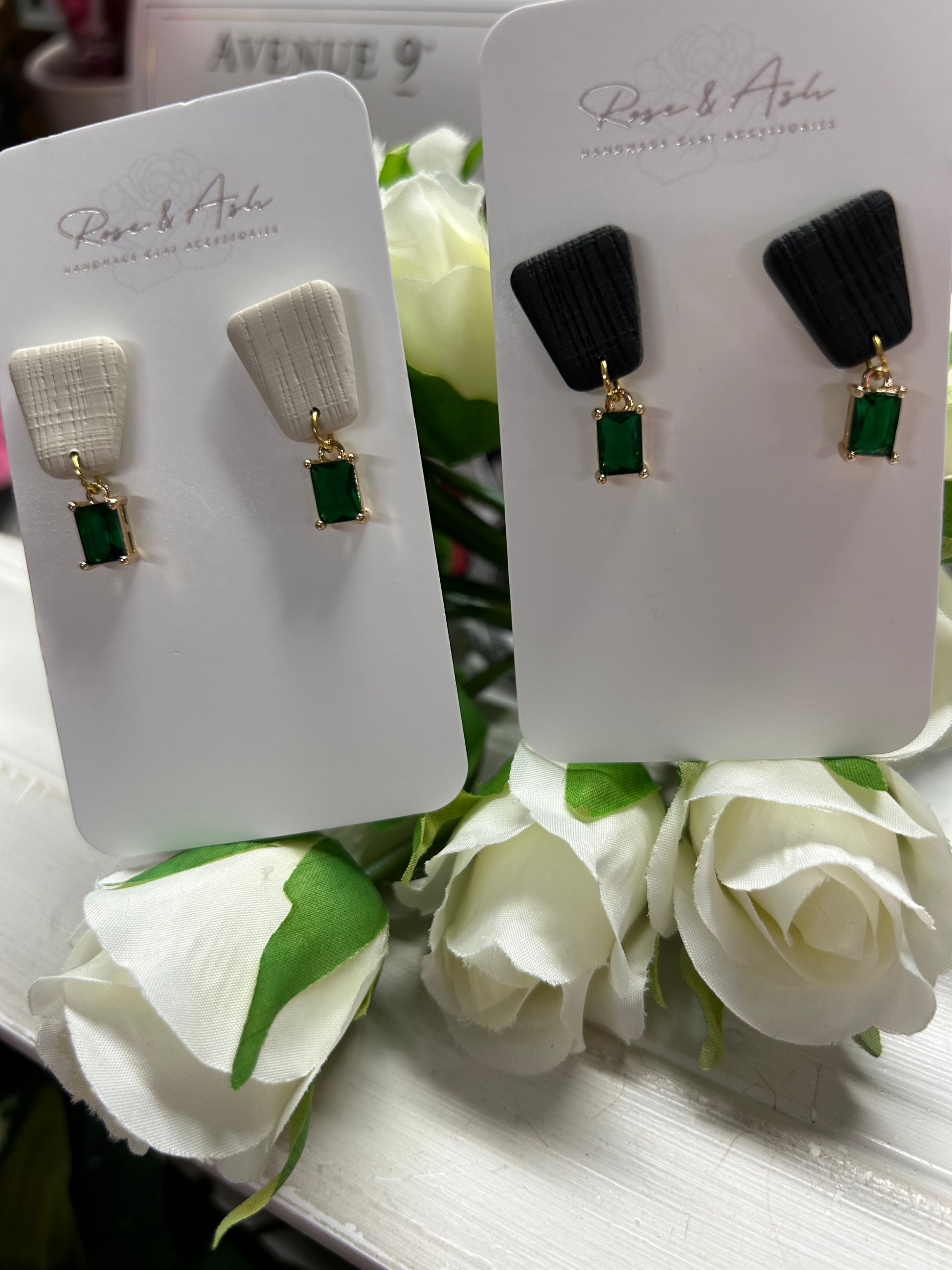 Handmade in Petawawa, Ontario. Quality lightweight earrings featuring beautiful emerald stone.