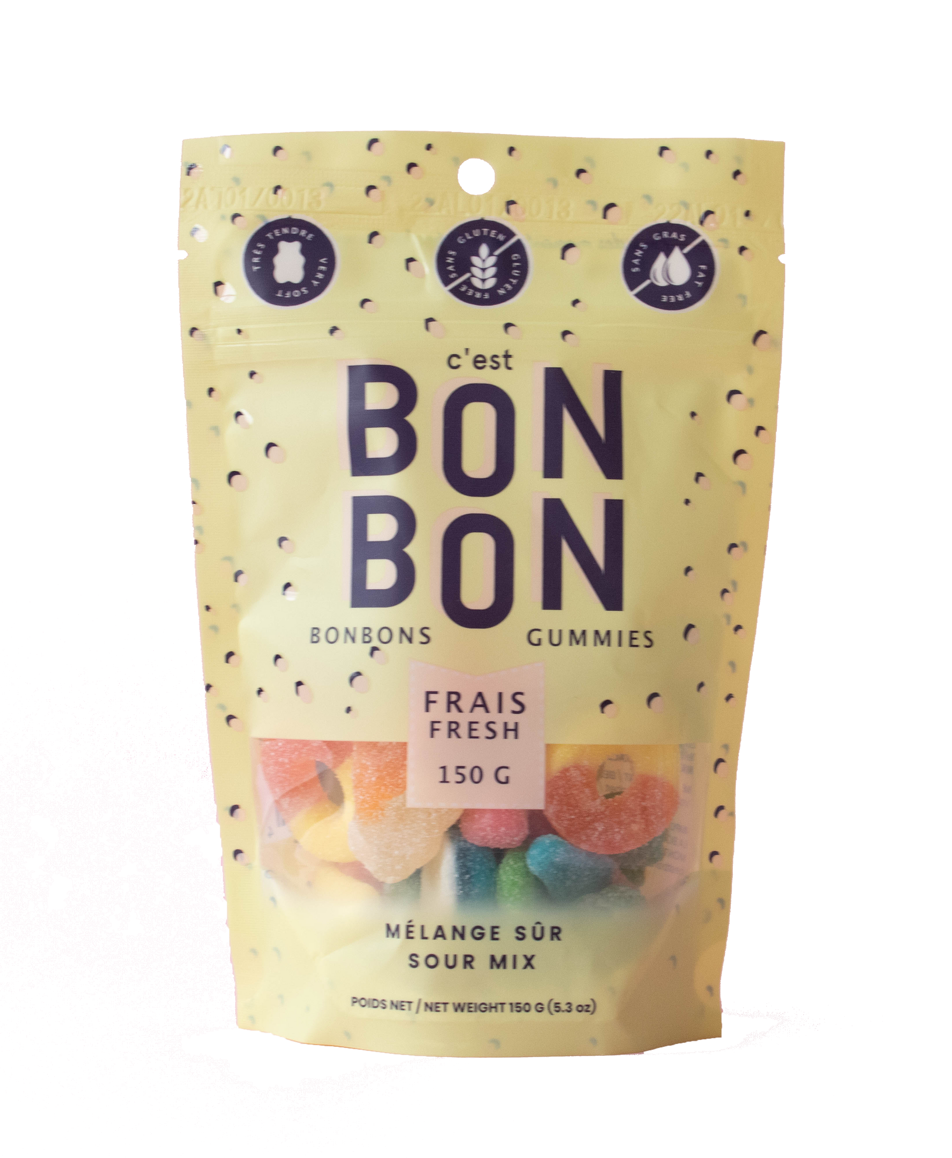 Who would have thought that one day you could buy happiness in a bag? Well, we've done the impossible! This mix offers a nice selection of sour candies! It is the alter-ego of the sweet mix, and still as popular and as good as ever! It's made up of our customers' favorite candies: little bears, bottles, and rings of all kinds, shapes and flavors.