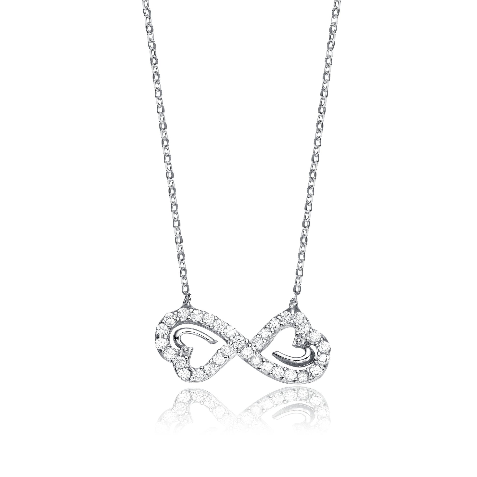 Cubic Zirconia, Sterling Silver, Double Heart Infinity Necklace