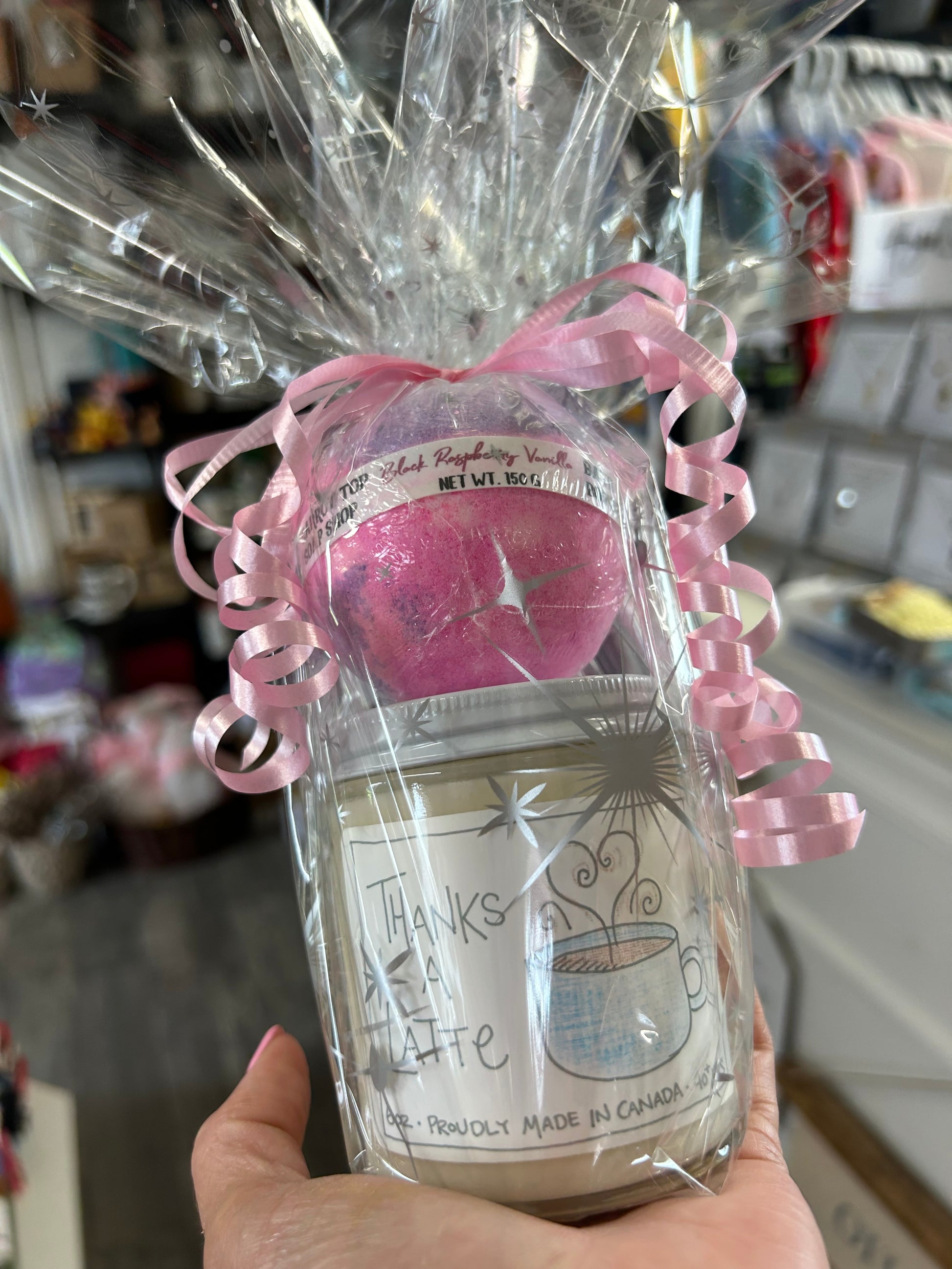 Perfect thank you gift, especially if you have many to buy for. Contains Thanks a Latte scented candle, 6 ounces