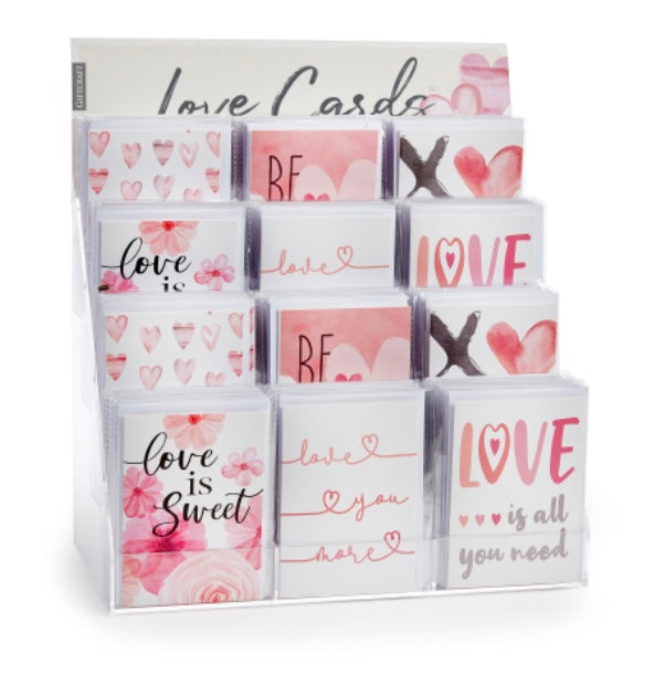 Romantic themed greeting cards as charming as Cupid's arrows! Available in 6 assorted sentiments: XOOX, LOVE IS ALL YOU NEED, BE MINE, LOVE IS SWEET, HAPPY HEART DAY.
