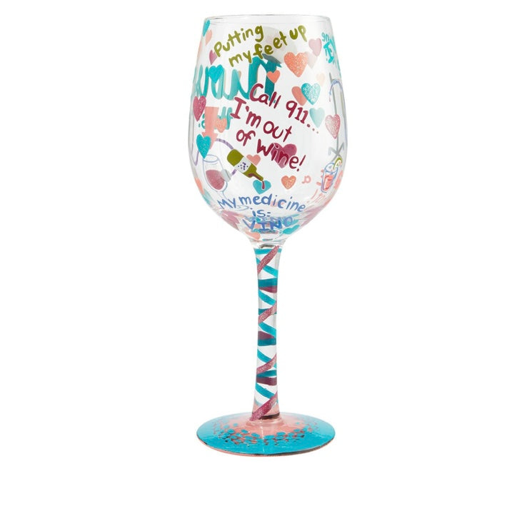 - Hand-blown "Nurse This" wine glass from Designs by Lolita