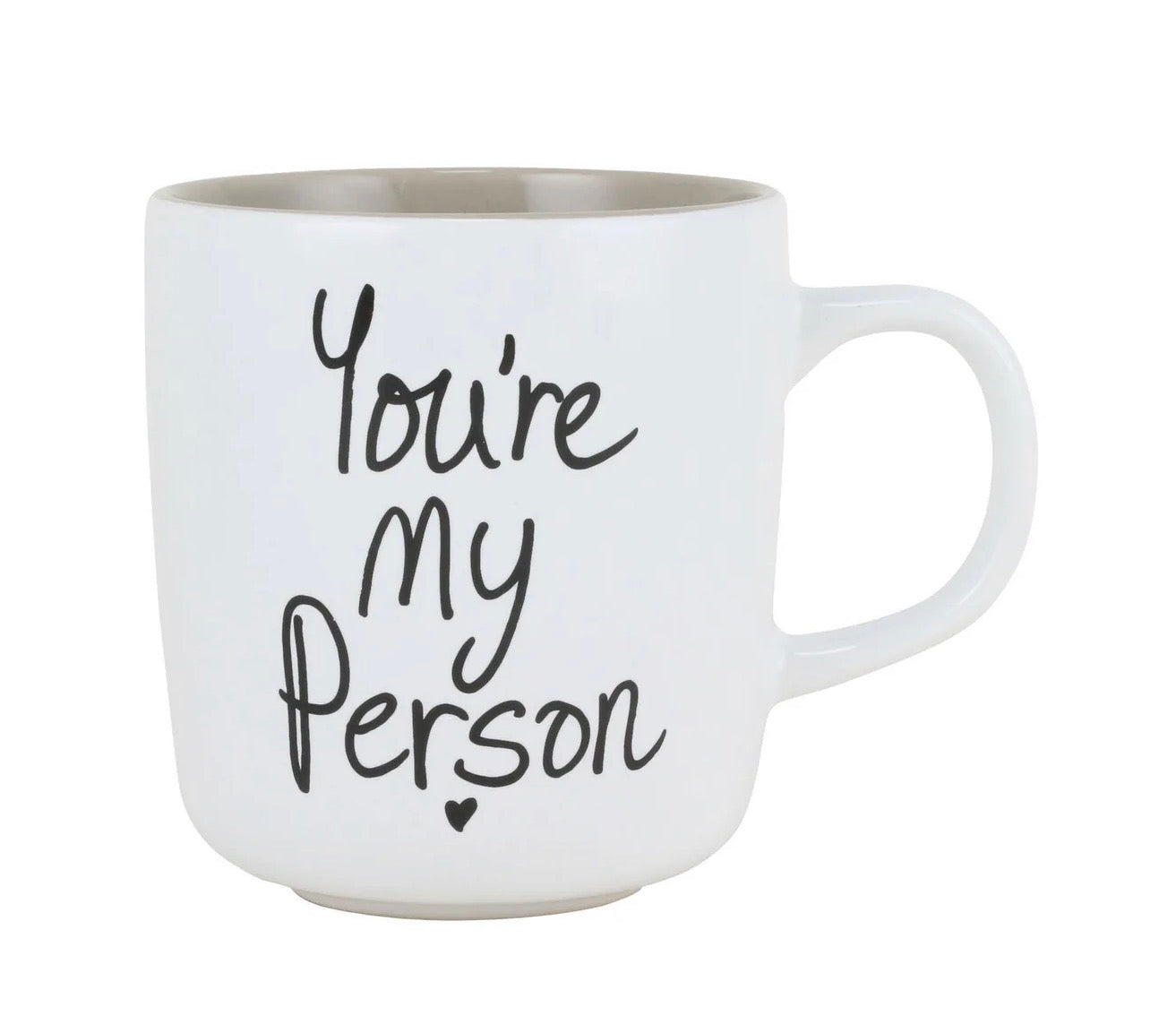 This 14 oz stoneware mug by the Simply Mud collection is a charming addition to any kitchen. With a clean design, this white mug features a handwritten script and makes a heartfelt gift for the special human you claim as your person.